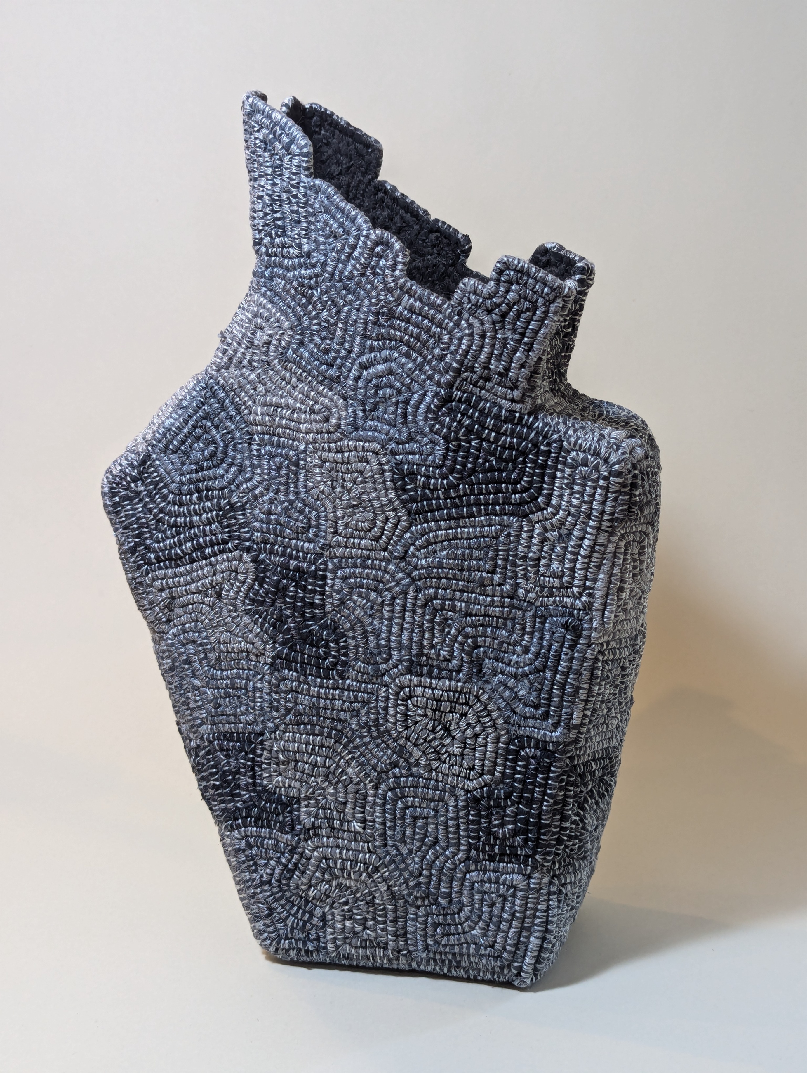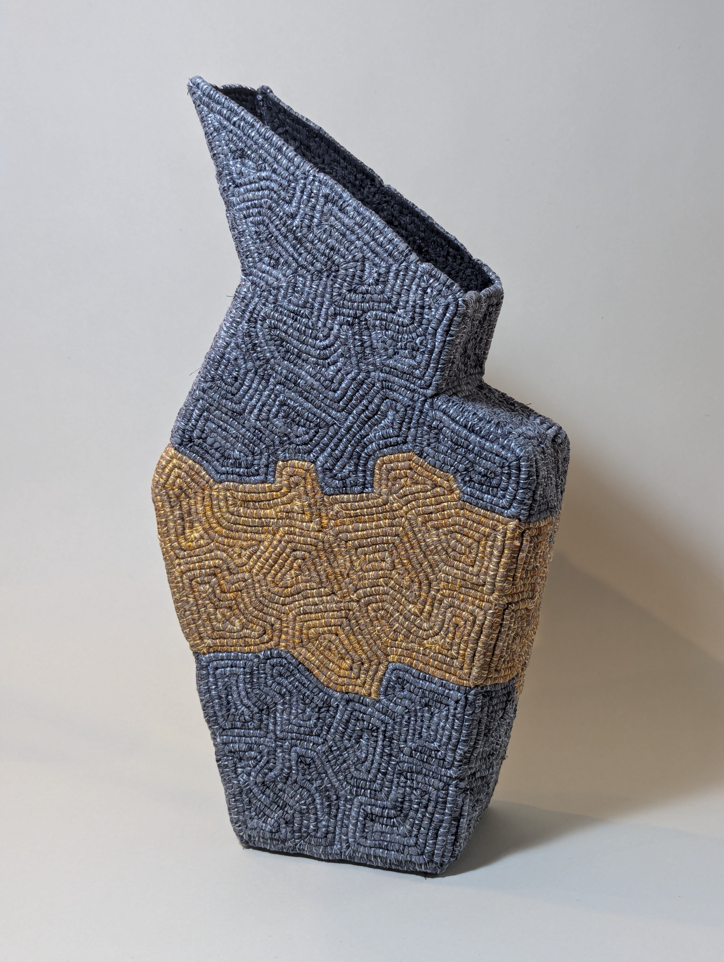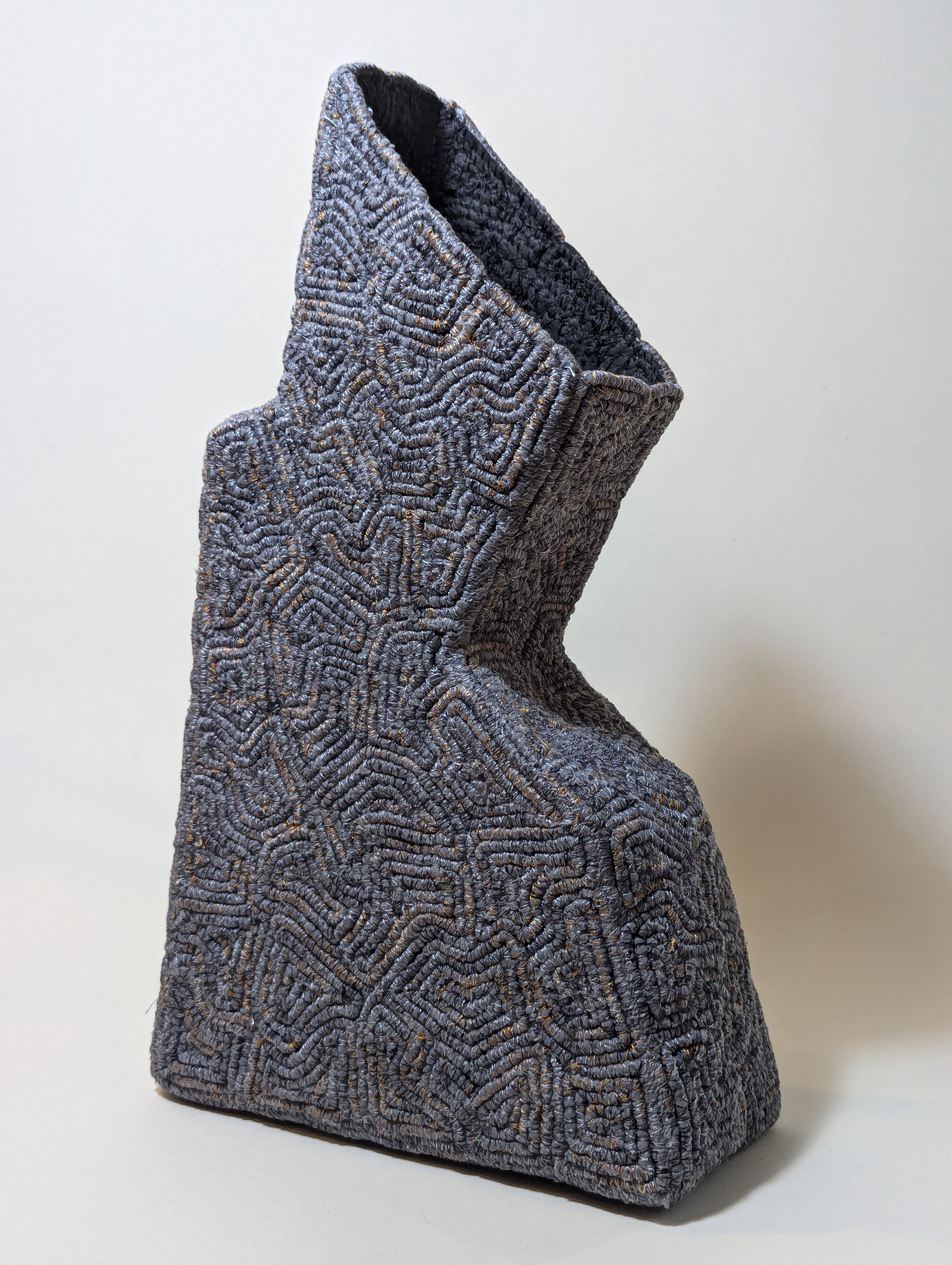 Sculptural textile form, handmade and crafted from hand-dyed cotton fabric and silk threads.